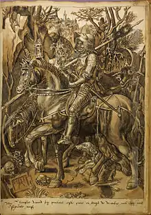 Au sein de son cahier, le dessin Le chevalier, la mort et le diable, d'après Albrecht Dürer a été présenté lors de l'exposition Lyon Renaissance. Arts et humanisme.