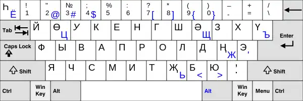 En Mongolie, il est fait usage d'un clavier spécifique dérivant du JCUKEN, appelé « FCUZHEN » (ФЦУЖЭН), où les lettres spécifiques au russe sont remplacées par des lettres utilisées en mongol.