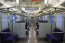 La disposition des sièges a également été améliorée sur la base des sièges semi-croisés(transversaux) de la série 70. L'espace entre les portes et l'extrémité de la voiture est un siège longitudinal pour deux personnes. À l'extrémité de la voiture (coté cabine de conduite), il y avait deux ensembles de sièges longitudinaux pour 3 personnes et des "sièges loges"(siège comme dans un avion tournés vers l'avant) pour 4 personnes.