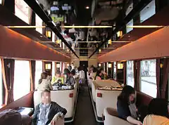 La disposition des sièges est constituée de sièges semi-croisés (longitudinaux et transversaux), les sièges transversaux étant disposés en groupe aux extrémités des voitures. L'espacement des sièges est de 1 490 mm pour la section à quatre places et de 845 mm pour la section à deux places. En utilisant des sièges fixes, l'espacement des sièges était plus étroit que la taille standard (910 mm) pour les sièges convertibles .