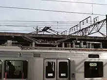 - Dispositif d'interdiction de passage en gare d'arrêt : installé sur les véhicules exploitant la ligne Senzan et la ligne Ban'etsu Ouest. L'appareil est installé à droite du conducteur, comme sur la série 205 de la ligne Senseki appartenant à la succursale Sendai Vehicle Center Miyagino. Affiche si le train s'arrête ou passe à l'approche d'une gare[Note 8]. La détection de l'emplacement du train utilise un capteur fixé au bogie pour compter la distance parcourue et dispose d'une fonction intégrée pour corriger manuellement les erreurs de détection de distance en cas de marche au ralenti du train.