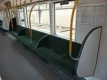 Chaque voiture possède une place UFR[9]. Une ligne jaune a été ajoutée à l'intérieur de la porte du passager au niveau des joints, et deux voyants rouges d'avertissement d'ouverture / fermeture de porte ont été installés dans le linteau en plus de la sonnerie à 4 tons.