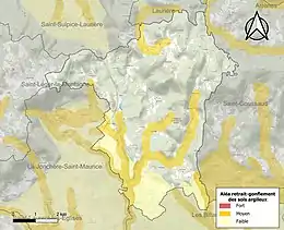 Le retrait-gonflement des sols argileux est susceptible d'engendrer des dommages importants aux bâtiments en cas d’alternance de périodes de sécheresse et de pluie[19]. 18 % de la superficie communale est en aléa moyen ou fort (27 % au niveau départemental et 48,5 % au niveau national métropolitain)[Carte 2]. Depuis le , en application de la loi ÉLAN, différentes contraintes s'imposent aux vendeurs, maîtres d'ouvrages ou constructeurs de biens situés dans une zone classée en aléa moyen ou fort[Note 3],[20].