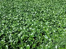 La Jacinthe d'eau, qui ne fait pas partie de la famille de la Jacinthe véritable, est un macrophyte aquatique dont les tiges forment des tapis flottants denses. La croissance de cette plante est une des plus rapides, voire la plus rapide, du règne végétal : les jacinthes d'eau peuvent pousser de 2 à 5 m par jour dans certains sites d'Asie du Sud-Est[3].