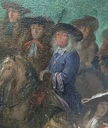 Profil présumé de Bossuet dans le tableau de la visite de Louis XIV à l'Académie des Sciences, par Henri Testelin - Musée de Versailles, MV 2074