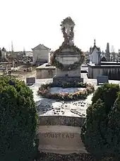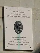 Ses obsèques ont lieu à la cathédrale Notre-Dame de Paris devant un parterre de personnalités de renom, comprenant sa famille pour une fois réunie sinon conciliée, plusieurs de ses pairs académiciens, des anciens de la Calypso et de la marine, et des politiques français et étrangers, anciens ou en exercice[59]. Il est inhumé dans le caveau familial de sa ville natale de Saint-André-de-Cubzac (Gironde). Sa ville lui rend hommage par l'inauguration d'une « rue du Commandant Cousteau », qui mène à sa maison natale (l'ancienne pharmacie de son grand-père), et la pose d'une plaque commémorative sur celle-ci.