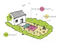 Le jardin à trois zones peut être globalement apprécié comme une adaptation des principes de la permaculture au jardinage, cependant quelques points sont à distinguer :