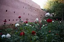 Une roseraie longe la muraille historique au sud du Cyber parc. Des toiles d’ombrage sont tendues pour rafraîchir l’esplanade du Cybercafé et inviter les promeneurs du cyber parc à un coin lecture calme et reposant.