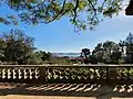 - la vue magnifique depuis la terrasse supérieure du jardin jusqu'à la terrasse inférieure, sur fond de la ville de Lisbonne avec le Tage, le pont et le Cristo Rei ;