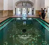 Il est parcouru de plusieurs bassins et petits canaux irrigués pour la plupart à partir de la source de Soleymaniyeh avec l'aide d'un système de qanats. La pression est si forte qu'il n'y a pas besoin de pompe pour alimenter certains bassins et certaines fontaines.