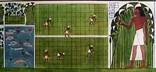 Le jardinage dans l'Égypte antique était un travail très dur ; les jardins nécessitaient une irrigation constante, avec de l'eau transportée ou soulevée à la main, le désherbage et l'entretien, y compris la propagation artificielle des palmiers dattiers, qui exigeait une grande habileté. De grands efforts étaient également nécessaires pour empêcher les oiseaux de manger les cultures. Des pièges ingénieux étaient installés pour attraper les oiseaux envahisseurs[2].