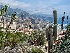 Jardin exotique de Monaco vu depuis Monaco-Ville. | |