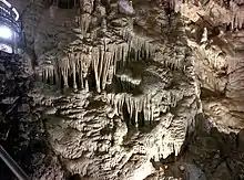 À la base de la falaise du jardin s'ouvre une cavité naturelle souterraine dans laquelle la roche calcaire, creusée par l'eau il y a des millénaires, est parsemée de cavernes ornées d'une grande variété de concrétions : stalactites, stalagmites, draperies ou colonnes.