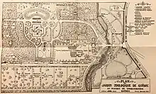 Le jardin de la fontaine; on peut voir le dôme de la serre indo-australienne en haut à droite