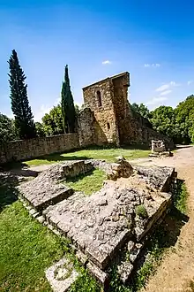 Parmi les annexes, on remarque, adossé au mur d'enceinte, un petit palais de style renaissance, ainsi qu'un pâté de maisons rustiques situé sur la partie haute du jardin.