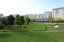 Jardins d'Éole vus de l'entrée rue Riquet. | ||
