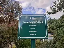 L'allée Jeannine-Worms honore l'écrivaine et dramaturge française Jeaninne Worms (1923-2006).