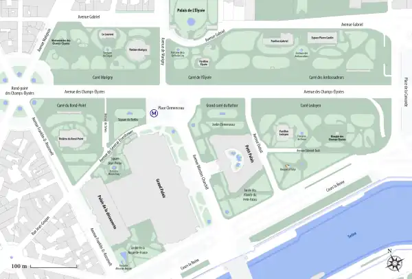 - Carré du Rond-Point jouxtant le rond-point des Champs-Élysées-Marcel-Dassault.