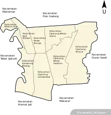 C'est à Jatinegara, dans le kelurahan de Kampung Melayu, qu'a eu lieu l'attentat de Jakarta du 24 mai 2017, qui a fait cinq morts et onze blessés.