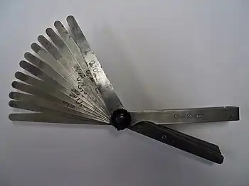 Une jauge d'épaisseur ou "Cale" est un outil ou instrument de mesure simple permettant de mesurer, ou plutôt d'estimer, l'espacement entre deux pièces mécaniques, communément appelé jeu.