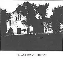 La reconstruction de l'église Saint-Antoine date de 1850. Elle est agrandie et transformée en église de pierre néoclassique à la grecque, particulièrement sobre, mesurant 84 pieds sur 44 pieds. Elle est consacrée en 1853. La paroisse n'a jamais été riche du temps de l'abbé Pelamourgues et les travaux de finition prennent du temps. Lui-même quitte Davenport pendant l'année 1852 pour se rendre en France au chevet de son père mourant.