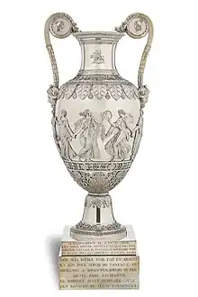 - Vase modèle pour une fontaine à thé, vers 1802 (création du modèle) / vers 1819 (exécution de la pièce), laiton, argenture par Christofle en 1907-1908 (Paris, Musée des Arts décoratifs).