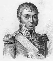 Jean-Baptiste Jourdan, né le à Limoges dans la Haute-Vienne et mort le à Paris, est un militaire français ayant accédé à la dignité de maréchal d'Empire. Fils de chirurgien, il est éduqué par son oncle à la mort de ses parents et décide de s'engager dans l'armée royale. Après une courte participation à la guerre d'indépendance des États-Unis, il retourne à la vie civile et s'installe à Limoges à la tête d'un petit commerce. Au moment où éclate la Révolution française, il adhère aux idées républicaines, ce qui lui permet d'obtenir le commandement d'un bataillon de volontaires.