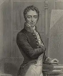 Jean-Baptiste Gaye, vicomte de Martignac, en tenue de député. Portrait peint par Sophie Feytaud en 1824. | |