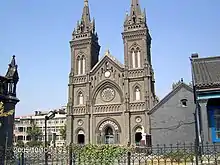 En 1909, jeune missionnaire à Kao-Chan-Touen, M.[3] Blois se vit confier le soin d'achever la construction de l'église de ce poste, commencée par M. Hérin, tout en restant chargé du district de Siao-hei-Chan dont il reconstruisit l'église en 1912, et qu'il dédia à Notre-Dame de Lourdes[1].