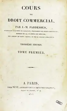 - Victor Simon, « La place du comparatisme dans l’œuvre de Jean‑Marie Pardessus », dans Les fondements historiques du droit européen des affaires, Presses de l’Université Toulouse 1 Capitole, coll. « Études d’histoire du droit et des idées politiques », (ISBN 978-2-37928-114-3, lire en ligne), p. 209–222