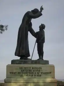 Monument de la rencontre à Ars commémorant la rencontre de Jean-Marie Vianney, le jour de son arrivée, avec le jeune berger Antoine Givre.
