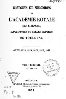 - Revue de l'Académie de Toulouse et des autres académies de l'Empire, mars 1858, p. 267.