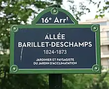 - Une allée porte son nom dans le Jardin d'acclimatation (Paris).