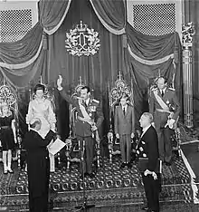Nommé lieutenant-représentant le , Jean de Luxembourg succède à sa mère qui abdique le et devient le nouveau grand-duc de Luxembourg. Le même jour, le nouveau chef de l'État prête le serment constitutionnel devant la Chambre des députés de Luxembourg[2]. Durant son règne, il ne commettra aucun faux pas et restera neutre au-dessus des partis politiques.
