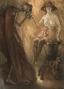 Soudainement, en 1909, il modifia complètement son style. Il commença à peindre des femmes lascives évoluant dans un décor morbide. Ses tableaux seront submergés de squelettes et d'un érotisme sans bornes. Des femmes quasiment nues étaient représentées comme servantes du diable, des esclaves qui devaient établir son royaume sur terre. À ses yeux, l'homme devenait un jouet flasque, contraint à se soumettre à ses moindres caprices.