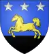 D'azur, au cheval d'or, terrassé de sable, accompagné en chef de trois étoiles d'argent.[1] |