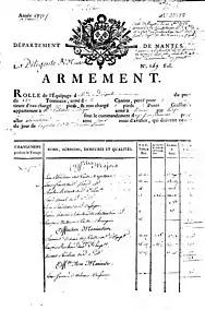 - . La Diligente, le 10 septembre 1774. L'Aimable Thérèse, le 17 avril 1772. Le Terray, le 1er juin 1773. Le Boynes, le 21 septembre 1773, accompagné de 3 corvettes : l'Orage, la Tempête et le Tonnerre. La Belle nantaise, le 5 octobre 1773