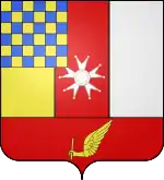 Tiercé en pal d'or, de gueules, chargé en cœur de l'insigne des Chevaliers légionnaires et d'argent.[2],[3] |