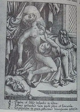 - Également en latin dans : Hysterotomotokia de François Rousset, ainsi que dans un recueil d'opuscules : De diuturnà graviditate, Amsterdam, 1662, in-12°[22]