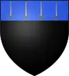 De sable, au chef d'azur, ch. de quatre épées rangées d'argent, garnies d'or, posées en pals, les pointes en haut.[5],[6] |