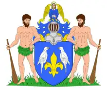 Jean du Fou est le premier à porter comme armoiries d’azur à la fleur de lys d’or, sommée de deux éperviers affrontés d’argent en lieu et place d'azur au léopard d'or. Ces armes auraient été octroyées par le Roi Louis XI, qui avait déjà emprunté divers meubles à la cynégétique afin de doter ses favoris d’armoiries. Le chancelier Pierre Doriole (1407-1485) portait d’azur à trois vols d’or, le grand-maître de l’Artillerie Tristan L’Hermite d’argent à une rencontre de cerf de sable, Lescun écartelé aux 1er et 4e : une fleur de lys, et aux 2e et 3e : quatre lapins courants.