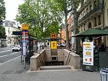 Bouche d'accès à la station et arrêt de bus situé en bordure du boulevard de Strasbourg.