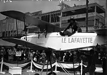 Le elle survole Paris avec un appareil Caudron pour y répandre des prospectus publicitaires pour la marque automobile Butterosi (en)[4].