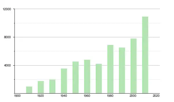 | 1950 | 4 523 | ▲ +27,88 % | |