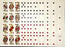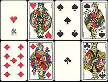 - au nord-ouest, les enseignes françaises sont utilisées : cœurs, carreaux, piques et trèfle ;