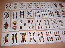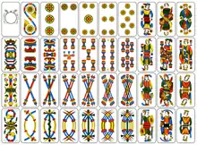 Les paquets comptent principalement 40 cartes : 1 à 7 et trois figures[3]. Certaines variétés en comptent toutefois 52[4]. Les figures diffèrent suivant les régions. Les cartes ne sont quasiment jamais numérotées.