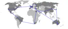 Après son départ d'Olympie, la flamme olympique parcouru le voyage suivant :