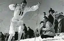 Des compétitions de combiné nordique ont lieu à tous les Jeux olympiques d'hiver depuis 1924. Les athlètes participent d'abord à la course de ski de fond de 18 kilomètres avec les concurrents de la compétition de ski de fond. Un nombre de points leur est attribué en fonction de leur temps. Le lendemain, les athlètes sautent deux fois du tremplin de saut à ski Olympiaschanze. Un nombre de points est attribué à chaque saut et le plus long saut est combiné au temps du ski de fond pour donner le score final[27]. L'équipe de la Norvège, pays traditionnel du combiné nordique, est battue par le Finlandais Heikki Hasu, qui devient le premier athlète non-norvégien à gagner la compétition. Il n'y a même aucun athlète norvégien sur le podium. Le coéquipier de Hasu, Martti Huhtala, remporte l'argent et le Suédois Sven Israelsson prend le bronze.