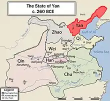La capitale de l'état était la ville de Ji (en) ou Jicheng (en) (chinois simplifié:薊城;chinois traditionnel:蓟城;pinyin:Jìchéng). La ville était située dans la partie sud-ouest de l'actuelle Pékin, juste au sud de Guang'anmen dans les districts de Xicheng et de Fengtai. Vers le VIIe siècle av. J.-C., Ji fut conquis par son voisin Yan, qui fit de la ville de Ji (en) sa capitale.