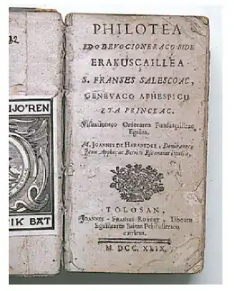 Le deuxième travail de traduction de Haraneder Philotea, edo devocioneraco bide erakusçaillea parut en 1749 à Toulouse, même si Sylvain Pouvreau l'avait déjà traduit en 1664. Un an plus tard, il publia la traduction du Combat spirituel de Lorenzo Scupoli, sous le titre Gudu izpirituala.[1]